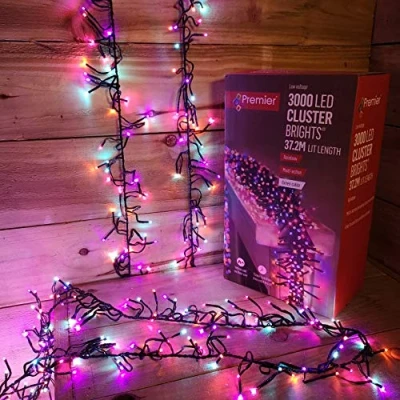Premier 37.2m 3000 RAINBOW LED Multi Action Cluster Brights with 8 Hour Timer Indoors Outdoors