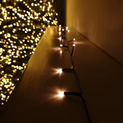 400 LED 40m Premier Christmas Indoor Outdoor Multi Function Battery Operated String Lights with Timer in Vintage Gold. Brighten up your home this Christmas with these battery operated multi function string lights by Premier Decorations. LEDs are spaced approximately 10cm apart on a green cable, meaning that they can easily blend into most Christmas scenes. This set requires 3x 'C' batteries (not supplied) and has a 30cm lead from the weatherproof battery box to the first bulb. Function changing button is located on the battery box (static, combination, in waves, sequential, slow glow, chasing/flash, slow fade and twinkle/flash). Featuring a memory chip so that the previous setting is remembered, and 6 hour on / 18 hour off timer function that will help to preserve the life of your batteries. Suitable for both indoor and outdoor use, with an IP44 rating meaning that this set is not waterproof, but can withstand light splashes. Not just for Christmas, this set can be used at any point of the year and in a variety of ways, ideal for providing ambient lighting and creating eye catching scenes