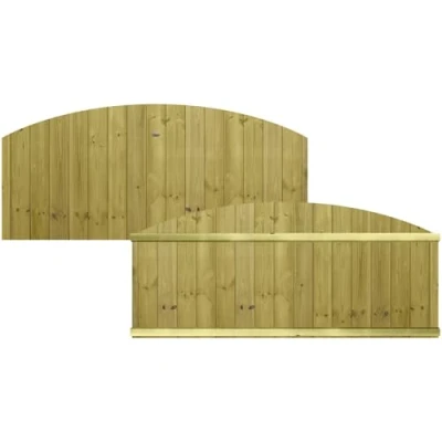 The panel dimensions are 6ft (183cm) Wide x 2ft (60cm @ Shoulder and approx. 80cm at top of the dome) High Premier Garden Supplies Dome Top Panels are measured to the shoulder and an approximate 20cm dome is added to the top. The tongue & groove boards used on the panel are 120mm wide and 12mm thick and each is interlocked and mounted vertically to create a smooth flat face of the panel. Our Semi-Braced panels use 34mm by 70mm smooth planed timber to horizontally brace the panel providing a strong but versatile and lighter frame., The dome style pressure treated fencing panel is ideal for increasing the privacy in your garden without completely cutting off the outside world., Thanks to a classic design that we have made using modern building techniques, this charming wooden fencing panel is guaranteed to look great in any style of garden. Our wood products are all pressure treated using Tanalith E, green flecks may appear within the wood but will fade over time as the products weather. Please note: timber will always contract and expand in different weather conditions, some dimensional variation should be expected. We recommend not painting the products for up to 6-8 weeks to allow the treatment to completely dry.