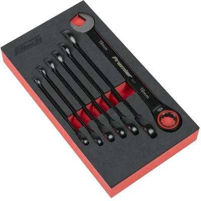 Premier Black Combination Ratchet Spanner Set 7 Piece