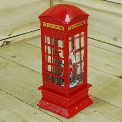 AmazonPremier Bo Christmas Glitter Water Spinner 'Telephone Box' Decoration Santa Design Beautiful Glittering, Shimmering Glistening Light Effects Requires 4 Aaa Batteries Not Included Size: 26.5Cm High X 1Cm Wide