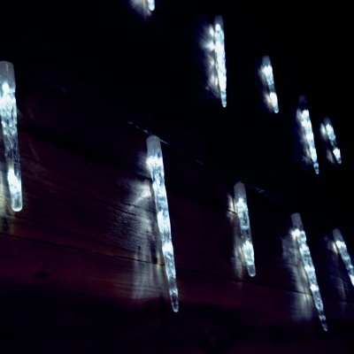 Illuminate your home or garden this Christmas with these decorative plastic icicle lights. Alternating between 20-30cm, each icicle contains energy efficient LEDs that illuminate in cool white. Mains operated with a 10m clear cable from the plug to the first icicle, making them easy to site near a socket. 24 icicles over 6.9m of lit length, hang from your guttering or arrange however you want. Multi function set features a button on the transformer that allows you to choose the light sequence. Suitable for both indoor and outdoor use, transformer must be kept dry at all times. Also available in other colours. Please note the video is to show the light patterns and is not necessarily the colour as shown in the listing.. Need some gutter hooks to hang them up? We've got you covered. (sold separately).. Watch Video. Video will open in a new window. Using the eBay App? Paste link into a browser window:. [isdntekvideo]