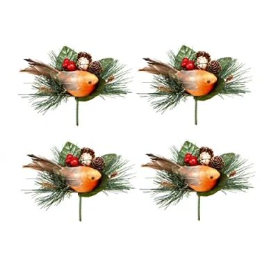 AmazonSet of 4 Premier Christmas Robin Pick With Pine Cones Festive Flower Arranging Wreath Decoration, Green