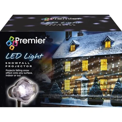 AmazonAccording to the EU Energy Efficiency Labeling directive, this product does not require energy labeling information. Projects a falling snow effect onto walls, houses, or other surfaces. Suitable for both indoor and outdoor use. Simple to set up and position for flexible display options Mains powered LED light with energy-efficient design, Weight: 1.06 pounds, Manufacturer: premier