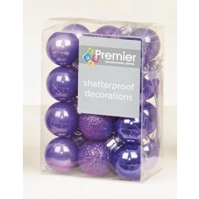 Premier Decorations 24 x 30mm Purple Christmas Tree Balls