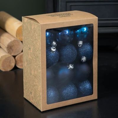 Create a striking festive display with this Set of 24 Shatterproof Christmas Tree Baubles in Midnight Blue. A coordinated collection designed to bring richness and texture to your seasonal décor.. The set includes 24 beautifully crafted baubles, each measuring 6cm in diameter, making them ideal for decorating Christmas trees of all sizes. The deep Midnight Blue tone offers a sophisticated alternative to traditional reds and greens, perfect for contemporary themes or elegant winter inspired schemes. The set features a combination of glittery, glossy and matte finishes, with six of each design included.. Made from a durable shatterproof material, these baubles offer the classic look of glass with added resilience. Each bauble comes complete with a silver hanging thread, allowing for quick and easy styling straight out of the box.. Suitable for indoor use only.. Product Specifications. Bauble Size 60mm