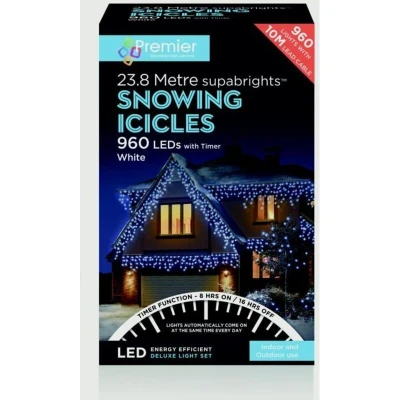 Illuminate your home this Christmas with the stunning Premier Decorations Icicle Lights featuring a built-in timer function. Designed for versatility, these lights are perfect for decorating rooftops, gutters, or any outdoor space that needs a festive touch. With a total length of 23.8 meters and adorned with 960 super bright cool white LEDs, these icicle lights create a beautiful winter wonderland effect.