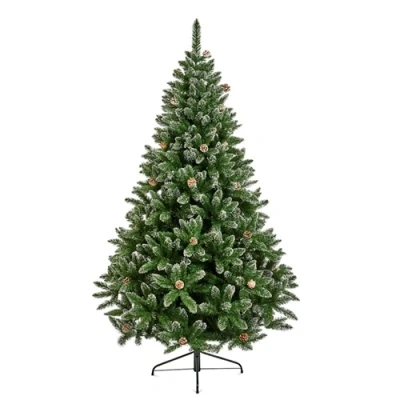 1.8m Rocky Mountain Pine PVC Snow Tipped Pine Cones6ft (approx) full shaped Christmas Tree.Snow tipped cones.Designed to look like a real tree.Hinged branches.Fire retardant.Metal stand included.105cm Diameter - 840 tree tips.The perfect addition to your home this festive season.It will feel like Christmas has finally arrived in your home with this gorgeous Classic rocky mountain pine Christmas tree.Complete your tree with a variety of decorations for the perfect festive look.The Rocky Mountain range looks as if the tree had just been cut from the side of an alpine mountain.With it's bell-bottom design and hinged branches, it's an easy tree to set up and light and with so much natural addition it needs minimal decorations.This stylish Christmas tree has painted snow tips and is embellished with fir cones.Technical Specification:Use: IndoorStand Material: MetalHeight: 1.8m / 6ftDiameter: 105cmTips: 840
