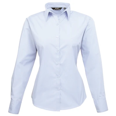 Premier Fitness Women's Poplin Long Sleeve Blouse, Blue (Light Blue), (Size:10)
