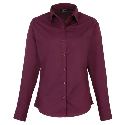 Premier Fitness Women's Poplin Long Sleeve Blouse Regular Fit Blouse, Red (Aubergine), 20(Manufacturer Size:20)