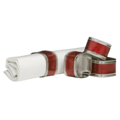 Premier Housewares 1403761 Square Glitter Napkin Rings Set of 4, Red, H4 x W3 D4cm