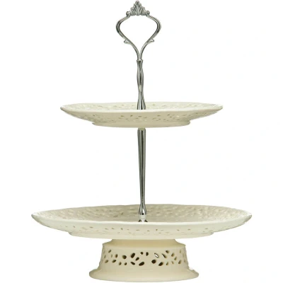 Premier Housewares 2 Tier Lace Cake Stand for Afternoon Tea Cream
