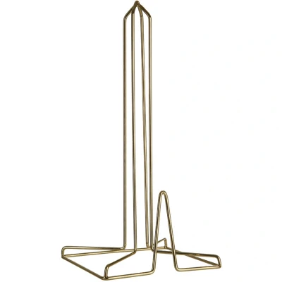 General description The Premier Housewares Vertex Gold Finish Kitchen Roll Holder combines functionality with a stylish design. Its unique geometric structure not only provides stability but also enhances the aesthetic of your kitchen. Technical specifications Material: Gold plated steel Base: Square for stability Usage Holds kitchen paper securely in place Guides paper from the roll with a rising triangle design