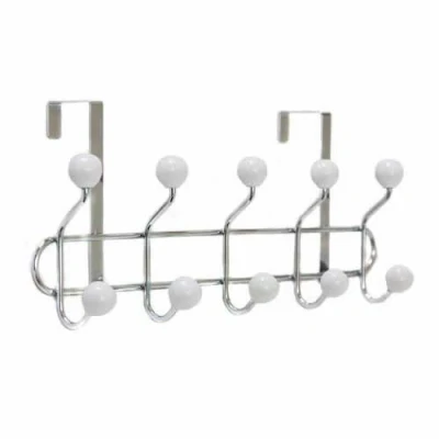 Premier Housewares 509557 10 Hook Over Door Hanger with White Ceramic Balls Chrome H19 x W45 D11cm
