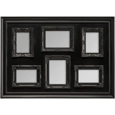General description Add a vintage look to your wall with the Premier Housewares Black Contemporary 6 Photo Frame. This multi-frame creates a beautiful feature in your home, allowing you to showcase your treasured moments in style. The exquisite design will accentuate your favorite pictures, making it ideal for hanging in various spaces such as your bedroom, dining room, hallway, or living area. Technical specifications Material: Durable and lightweight PP plastic Finish: Black Frame configuration: 3 x landscape and 3 x portrait Includes a glass pane to protect photos