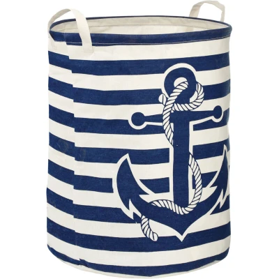 ManoManoGeneral description This laundry bag features blue stripes with a striking anchor design, providing a stylish way for organization. Technical specifications Material: Cotton, polyester, and rayon Durable and retains shape Textured finish