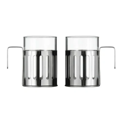 Premier Housewares Antigua Coffee Mugs Set of 2, Chrome
