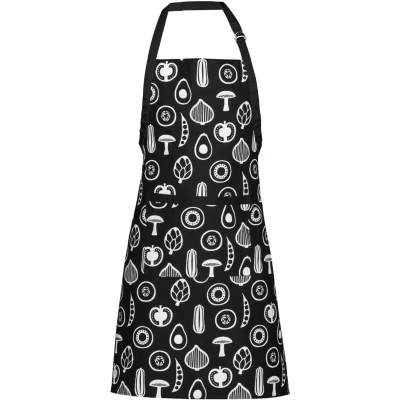 General description Look stylish in the kitchen while preparing meals with the black and white Besa apron, designed to protect your clothes from spills and splatters. Made with 100% cotton, the apron features a stylish white vegetable outline design against a black background, making it a fantastic addition to your kitchen decor. An adjustable strap ensures a snug fit, making it suitable for all chefs in the house. Two front pockets provide convenient storage for essentials, enhancing its practicality. Technical specifications Material: 100% cotton Design: Black background with white vegetable outline Adjustable strap for a secure fit Two front pockets Machine washable