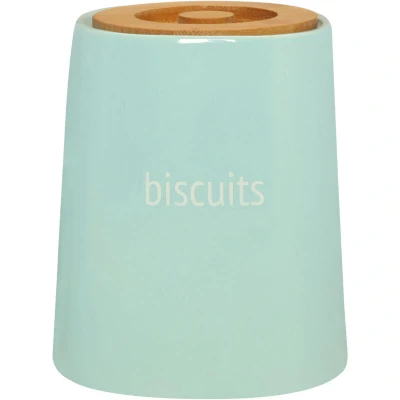 General description Keeping your kitchen organised and tidy, the charming Premier Housewares Biscuit Canister, with a bamboo lid, is perfect for having your favourite treats close at hand in a beautiful and secure manner. The tapered design canister is made from durable dolomite and features embossed ribbed detail with the word 'biscuit' for easy identification. The blue finish adds a touch of freshness to your kitchen and complements most decors or kitchenware. Technical specifications Material: Dolomite Dimensions: H17 x W14 x D14 cm Weight: 771 grams Usage The bamboo lid securely fits on top, keeping your biscuits, cookies, and other treats safely stored and fresh for longer. It also helps keep humidity away, preserving the crispiness of your treats. Other information Care instructions require washing before first use with warm soapy water, rinsing, and towel drying.