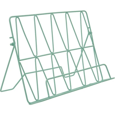 JoybuyThe Vertex Pastel Green Finish Cookbook Stand is a stylish, durable iron holder with a modern geometric design and vibrant green finish. It securely supports cookbooks on your countertop, blending functionality with contemporary kitchen decor.