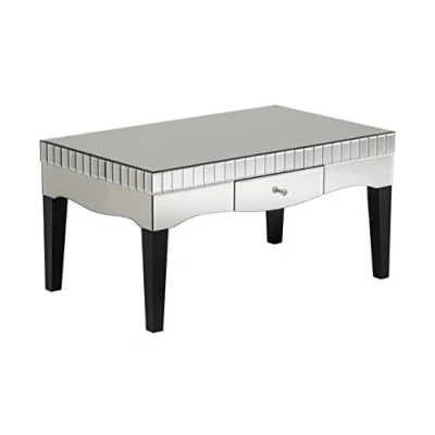 Our beautiful Boulevard coffee table will provide your home with elegance and storage without compromising style A striking focal point in your living space, the table is made from durable MDF and features an alluring mirrored finish which will reflect light and style into your room A single drawer, with an exquisite crystal like handle, give you ample space for storing household and personal items, while keeping them out of sight Care instructions: Clean with glass cleaner Height 51 x Width 102 x Depth 62 cm