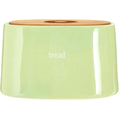 General description The Premier Housewares Fletcher Green Ceramic Bread Crock features a tapered design made from durable dolomite, adorned with a white 'bread' detail for easy identification. This stylish and functional canister is perfect for keeping your favorite baked treats close at hand, helping to maintain a clutter-free kitchen. Technical specifications Material: Dolomite Color: Green with white detail Compatibility and accessories Bamboo lid with integrated handle Usage Ideal for storing breads, rolls, and pastries Helps keep baked goods fresh for longer
