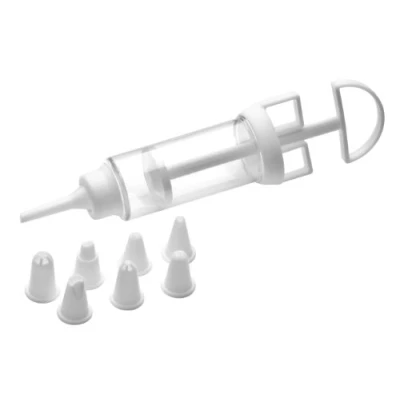 Practical and fun choice for creating delicious looking baked treats Includes 8 decorative nozzles to help you create a diverse range of patterns and designs The easy action icing syringe is made from strong plastic with easy change of icing nozzles Care instructions: Wash in warm soapy water, rinse and towel dry Height 22 cm x Width 5.5 cm x Depth 5.5 cm