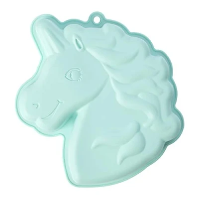 The mimo unicorn cake mould is made from bright teal coloured silicone Bake a magical unicorn head shaped cake, ideal for kid's birthdays and parties Created from silicone the mould is supple and flexible making it easy to remove the baked cake Care instructions: wash before first use. Dishwasher safe. Width 27 x Depth 22 x Height 5cm