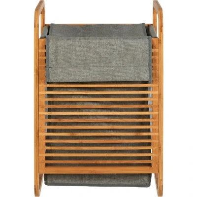 ManoManoGeneral description Crafted from renewable bamboo, this laundry hamper features a slatted frame and a fabric liner, combining functionality with an eco-friendly design. Wooden handles make it easy to lift and carry.
