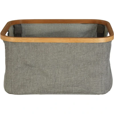 JoybuyThe Interiors by Premier Rectangular Storage Basket features an eco-friendly bamboo rim and grey fabric body, offering a stylish, collapsible storage solution with cut-out handles for easy carrying. Its rectangular design fits neatly into shelves or cupboards, ideal for organised, contemporary living spaces.
