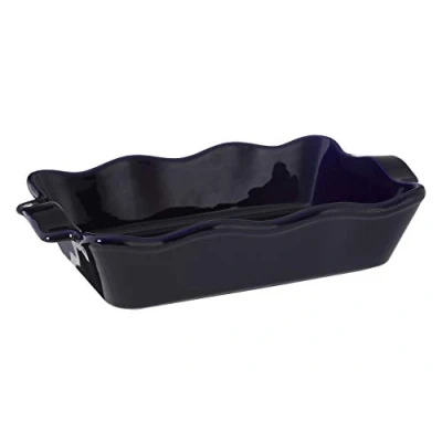 A contemporary piece of stoneware, the small modern Retro casserole dish is finished in a deep shade of blue The rectangular casserole dish features a unique design, with wavy, undulating edges and handles A high gloss finish accentuates the distinctive design Wash in warm soapy water. Rinse and towel dry. Allow to cool before immersing in water. Do not use abrasive cleaners. Not microwave or dishwasher safe. Width 38 x Depth 23 x Height 8cm