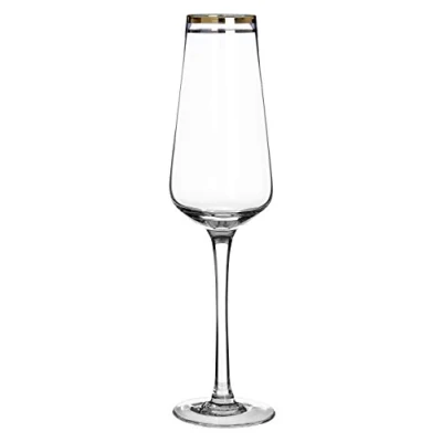 Tapered design of the Charleston champagne glass ensures that its contents will stay fizzy for longer Individually hand blown, each glass has beautiful silver and gold lines around the rim Inspired by the decadence that underwrote the art deco period, these glasses are great for special occasions Care instructions: Wash in warm soapy water, rinse and towel dry Dimensions (H x W x D): 25 x 7 x 7 cm
