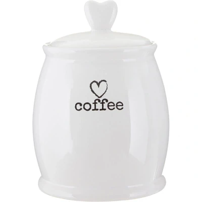 General description Transform your kitchen storage with the White Dolomite Coffee Canister from Interiors By Premier. This elegantly designed kitchen canister combines beauty and functionality, making it the perfect addition to your culinary space. Crafted from high-quality dolomite, this canister boasts a smooth and easy-to-clean surface, ensuring that your kitchen remains stylish and organized. The charming white dolomite body is complemented by a delicately rounded shape, providing a modern touch that fits seamlessly into any kitchen decor. The elegant black coffee lettering adds a sophisticated flair, making it easy to identify your coffee storage at a glance. Its heart-shaped knob not only enhances its aesthetic appeal but also ensures effortless access to your favorite coffee blends. Technical specifications Dimensions: H16 x D12 x W12 cm Weight: 0.72 kg Usage Easy to clean: Simply wash in warm soapy water to maintain its pristine appearance.