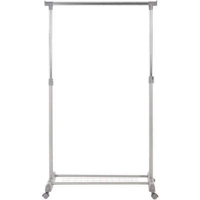 AmazonVersatile storage solution that creates additional clothing and shoe storage for your bedroom Made from strong and durable chrome with wheels for easy movement Adjustable height of 93 - 168 cm to fit long dresses that won't fit in the limited height of a wardrobe Care instructions: Wipe clean with a soft cloth, do not use abrasive cleaners Height 168 cm x width 83 cm x depth 43 cm