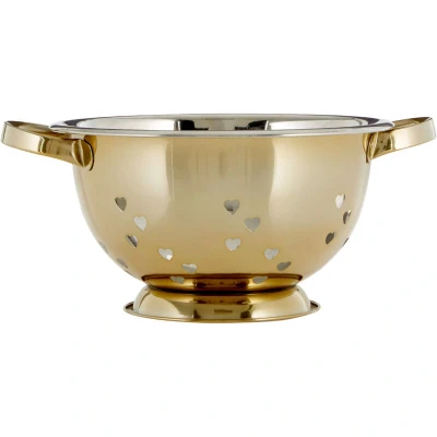 General description Crafted from durable stainless steel in a luxe gold finish, the Hearts Design colander features large handles for easy use and a stable plinth. Drain water with style through the heart-shaped cut-out holes.