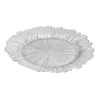 Premier Housewares Dia 36 Pc Silver Finish Reef Charger Plate/Plate Set/Melamine Plates/Dinner Plates/Small Plates/Silver Plates/Serving Plates/Dimensions are w33 x h2 d33 cm
