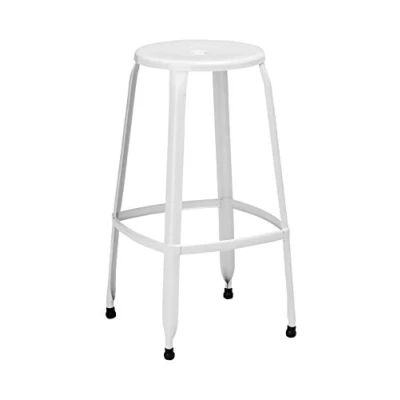 Robust stool is given a white powder coating gives it a smooth, easy to clean finish that will complement most decors Plastic coverings on the feet will protect your floor from scratches Footrest gives you added stability when seated Care instructions: Wipe clean with a soft cloth and do not use abrasive cleaners Dimensions (H x W x D): 76 x 39 x 39 cm
