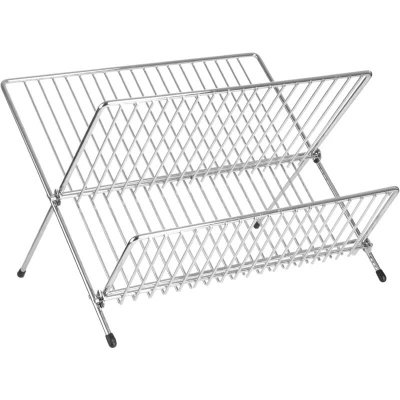 General description Elevate your kitchen’s functionality with the Interiors By Premier Small Folding Dish Drainer. Designed for both style and practicality, this chic chrome dish drainer allows you to let your plates, mugs, and bowls drip dry effortlessly. Crafted from durable stainless steel, it features a sleek chrome finish that adds a touch of elegance to any kitchen. With space to accommodate up to 18 plates and a tiered design for bowls and mugs, this dish drainer provides plenty of storage for your dishes to dry neatly. Perfect for everyday use, this draining board rack is ideal for any kitchen sink setup. The versatile design includes a draining board mat for catching excess water, while the drainer rack ensures your dishes dry quickly and hygienically. Unlike bulky alternatives, this dish drainer folds flat when not in use, allowing for compact storage and saving valuable counter space. Technical specifications Dimensions: H22 x L32 x W33 cm Weight: 1.22 kg Usage For