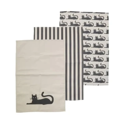 Premier Housewares Elevate Your Kitchen Decor Set of Three Black Cat Tea Towels Multi Print Lightweight Absorbent Towel Coverage for Tasks 40x1x60