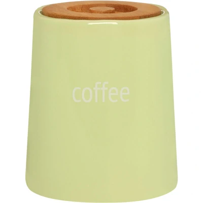 General description This Green Ceramic Coffee Canister from Interiors By Premier elevates your kitchen organization with its charming blend of functionality and style. Crafted from durable dolomite, it is designed to withstand the test of time, ensuring your coffee remains fresh and flavorful. The tapered design adds a modern touch to your kitchen decor, while the white "Coffee" text clearly indicates its contents. This versatile canister is perfect for loose leaf coffee or as a decorative piece, complementing most decors and helping to keep your kitchen tidy. Technical specifications Dimensions: H14 x D12 x W12 cm Weight: 0.48 kg Other information Material: Durable dolomite Bamboo lid with integrated handle for secure fit