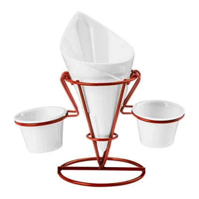 Premier Housewares French Fry Cone with Stand and Two Dip Dishes White/Red