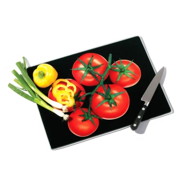 Premier Housewares Glass Chopping Board with Tomato Design Black