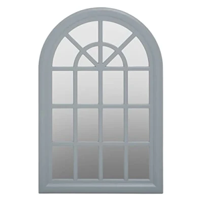 ManoManoGeneral description Inspired by the timeless window design, this Chinese oak wall mirror in grey finish complements both classic and modern decors with its arched aesthetic. The mirrored glass accentuates window panes in small cutout sections, creating a striking statement piece.