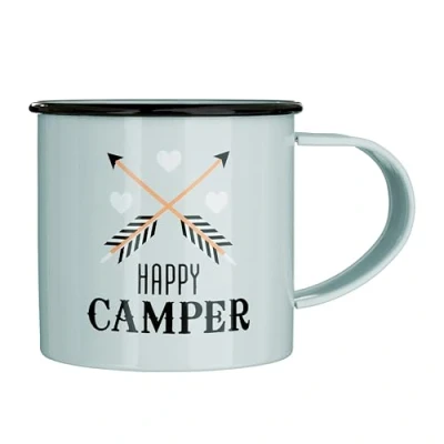 Premier Housewares Happy Camper Mug, Grey, 350 ml