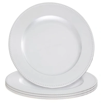 Elegant Silver Finish: Sleek silver colour adds a refined, boutique-style accent to dining tables and special occasions Decorative Dotted Rim: Subtle raised dot detailing around the edge creates visual interest while maintaining a minimalist look Durable Melamine Construction: Made from strong synthetic material that is lightweight, sturdy, and suitable for repeated use Versatile Table Styling: Ideal as a charger plate, serving plate, or decorative base for dinnerware at events and formal settings Generous Size: Measures 33 cm in diameter, providing a stylish frame for dinner plates and place settings, Manufacturer: Premier Housewares