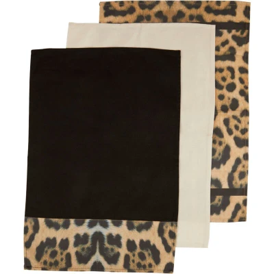 Premier Housewares Interiors by Set of Three Cotton Tea Towels, Ultra Absorbent Kitchen Leopard Pattern Towels