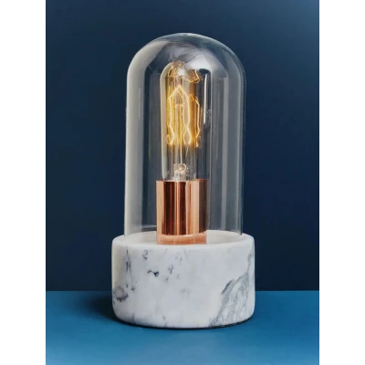 JoybuyThe Interiors by Premier Table Lamp Lamonte Bell Marble Grey/Copper features a genuine grey marble base, clear glass cloche, and copper-coloured bulb holder, embodying Nordic minimalism for elegant ambient lighting. Each lamp is unique, crafted for contemporary interiors, and suitable for E27 bulbs up to 40W (bulb not included).