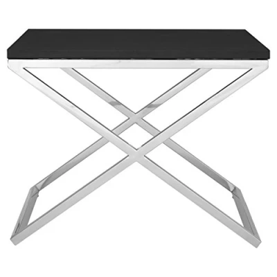 MDF table top finished in a black leather effect polyurethane Features crisscross legs which not only makes for an interesting design, but ensures the table is sturdy and durable Creates extra surface space to place drinks or display decorative items on Care instructions: Wipe clean with a soft cloth. Do not use abrasive cleaners Dimensions (H x W x D): 49 x 65 x 65 cm