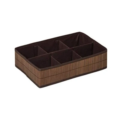 Premier Housewares Kankyo Bamboo Storage Box with 6 Sections, Dark Brown, 27 x 40 10 cm