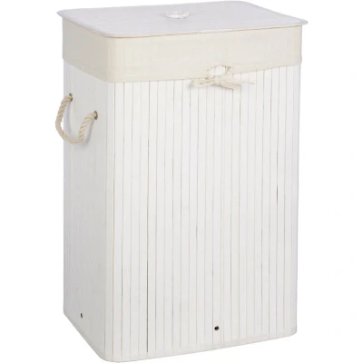 Amazon MarketplaceMade from eco-friendly bamboo wood, its matching lid hides any unsightly clothing Features two cotton rope handles for easy transportation This white laundry hamper is ideal for keeping in the bathroom Care instructions: Dust bamboo with a dry, soft cloth. Lining is machine washable Dimensions (h x W x D): 60 x 40 x 30 cm